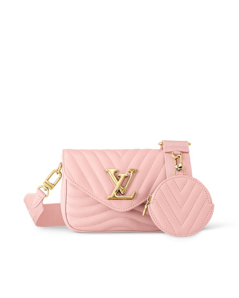 - Louis Vuitton introduces the versatile New Wave Multi-Pochette crossbody handbag in quilted cowhide leather. With its wide strap, featuring an embroidered “Louis Vuitton” signature, gold-color chain for hand or short shoulder carry, and round coin purse clipped on the strap’s snap hook, all removable, it is the very definition of a versatile fashion accessory.